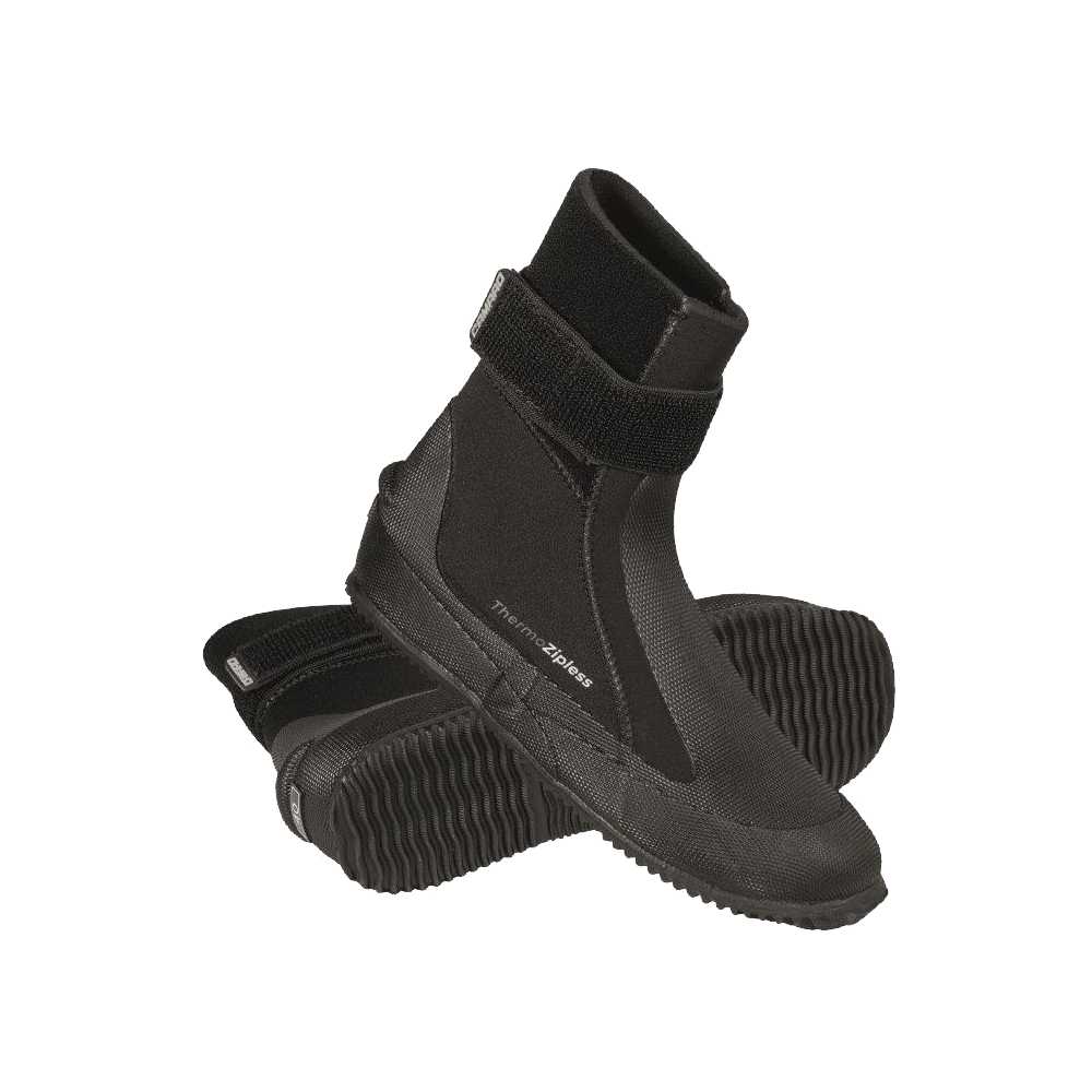 Neue Camaro Neoprenschuhe (6 mm) ohne Reißverschluss. Dank des hochflexiblen Materials leicht anzuziehen und perfekt an jede Wade anpassbar. Ein Klettverschluss sorgt für optimale Abdichtung und individuelle Passform. Wasserdichte Konstruktion, robuste vulkanisierte Sohle und Fersenkappen für sicheren Halt.