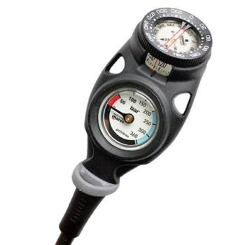 Console analogique avec manomètre 0-360 bar et profondimètre o à -70m. Boitier aux angles optimisés, résistant aux chocs, pour une lecture facile. Il est possible d’opter ultérieurement pour le remplacement du profondimètre par le boitier de l’ordinateur Puck.
