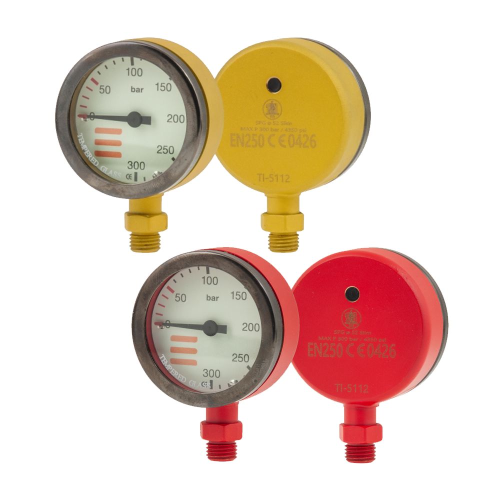Manomètre avec diamètre de 52 mm, boîtier en métal et verre trempé.